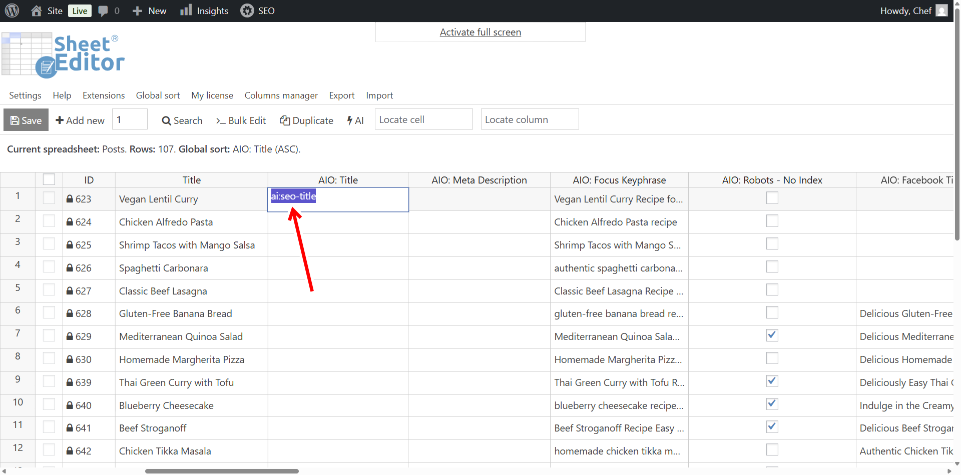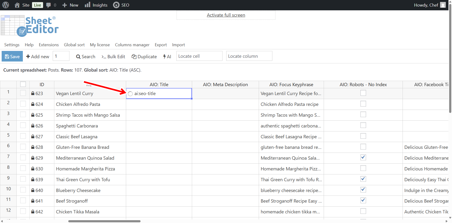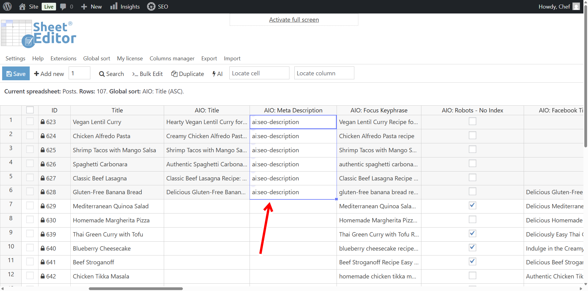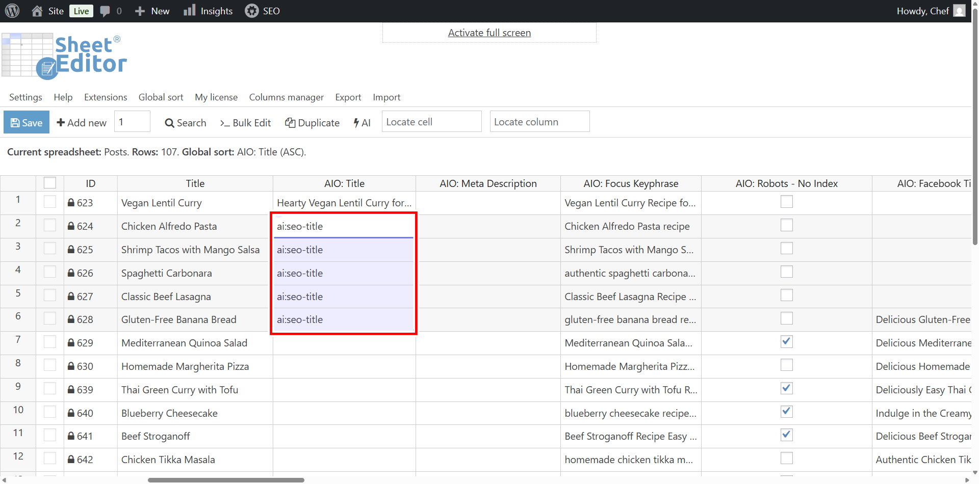 All In One SEO is a popular WordPress plugin that helps enhance your site’s search engine visibility. By integrating it with WP Sheet Editor, you can manage AIOSEO fields directly in a spreadsheet. And with the power of generative AI, you’ll streamline your SEO workflow like never before!