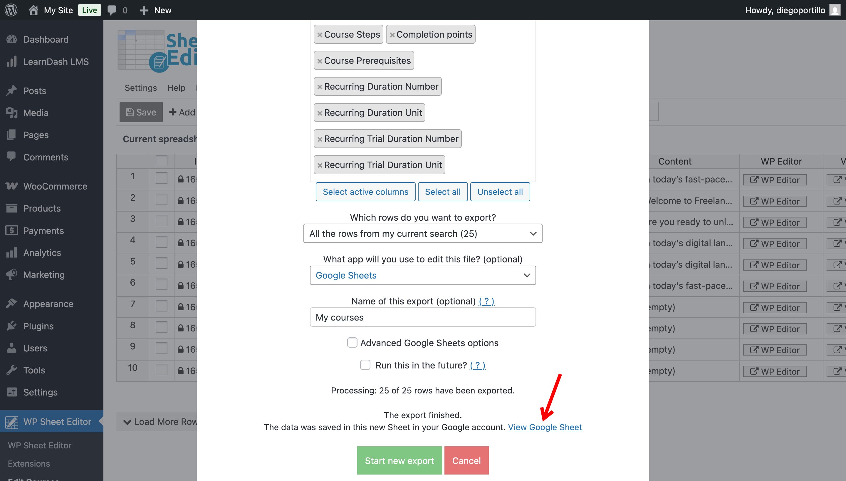 Exporting LearnDash courses to Google Sheets removes the friction from managing your LMS data. With WP Sheet Editor and the Google Sheets Sync service, you can generate reports, create backups, and prepare for bulk edits in seconds, freeing up your time to focus on creating great course content.
