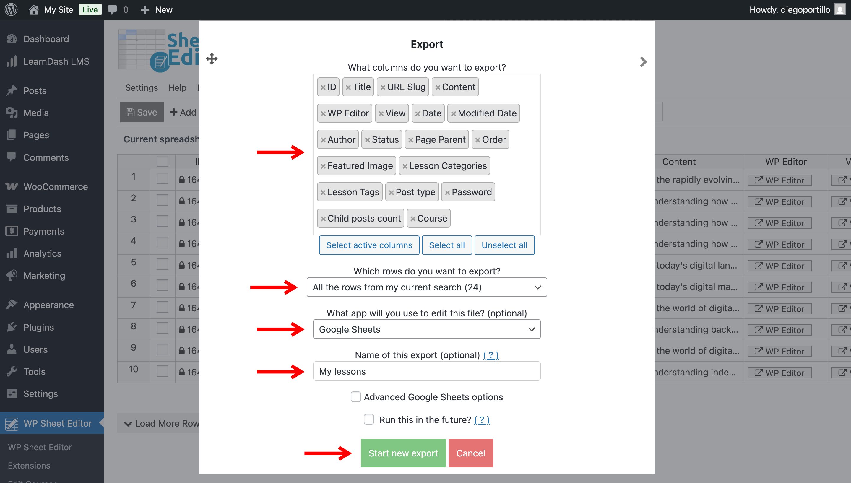 Step 4. Export LearnDash Lessons to Google Sheets