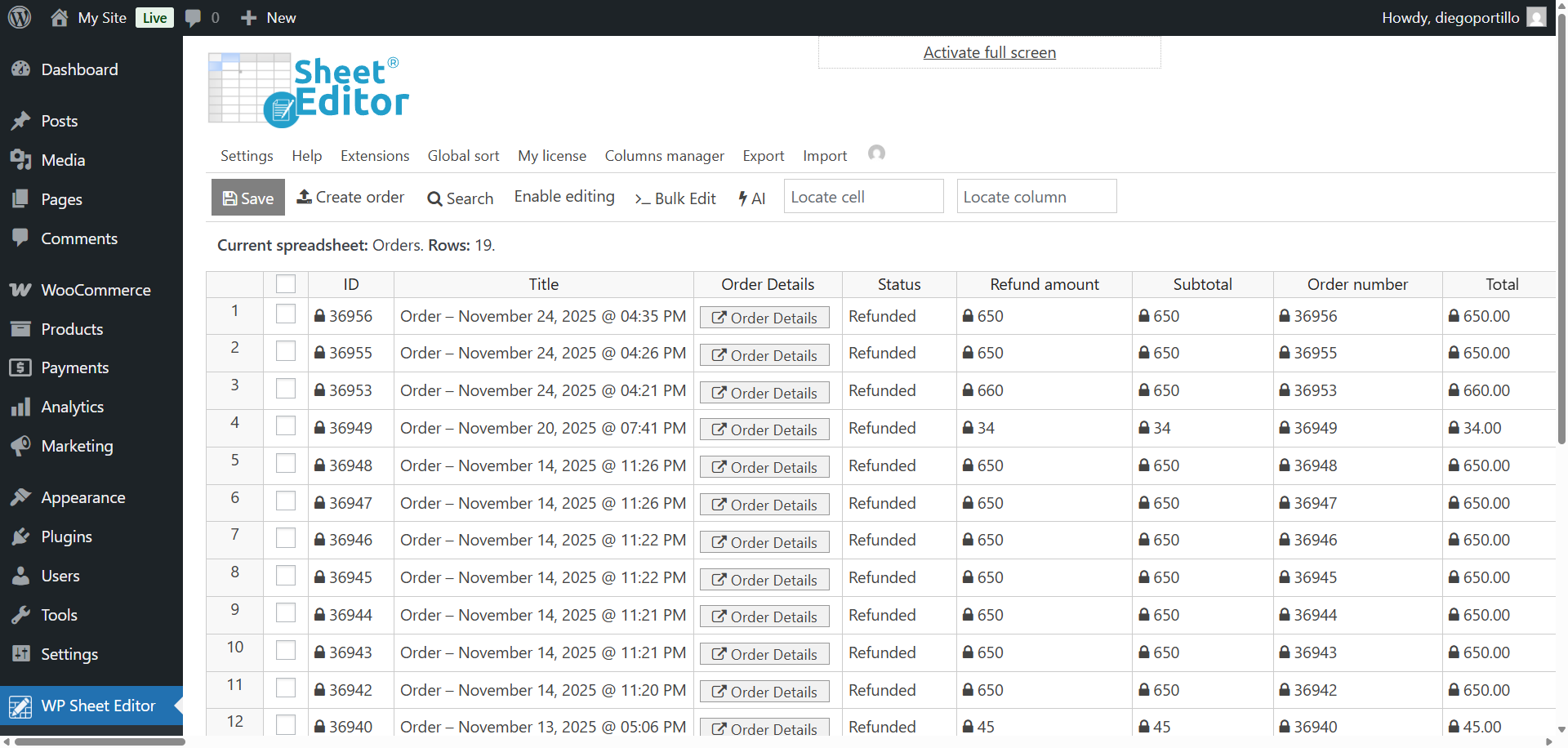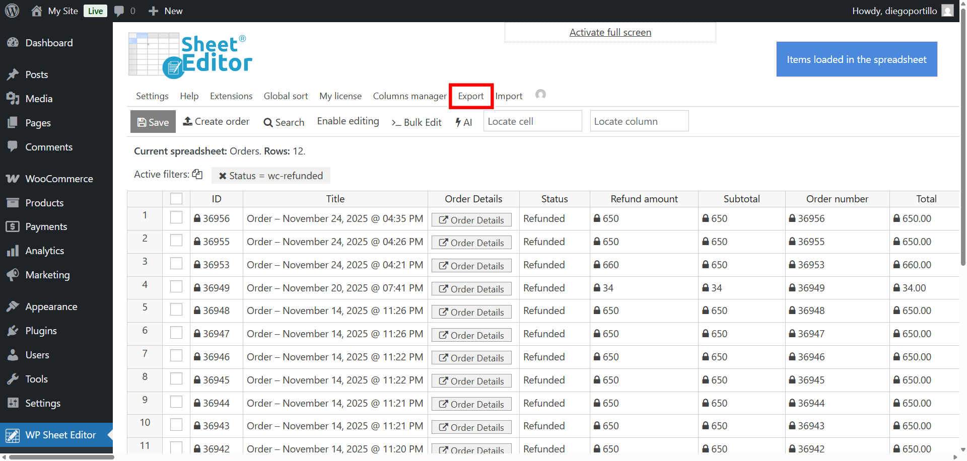 With WP Sheet Editor – WooCommerce Orders, exporting refunded orders becomes a fast, automated workflow, giving you accurate financial data with zero manual effort.