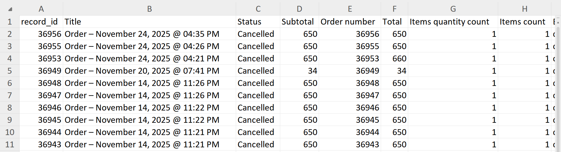 Your file containing all the cancelled order data will be downloaded to your computer.