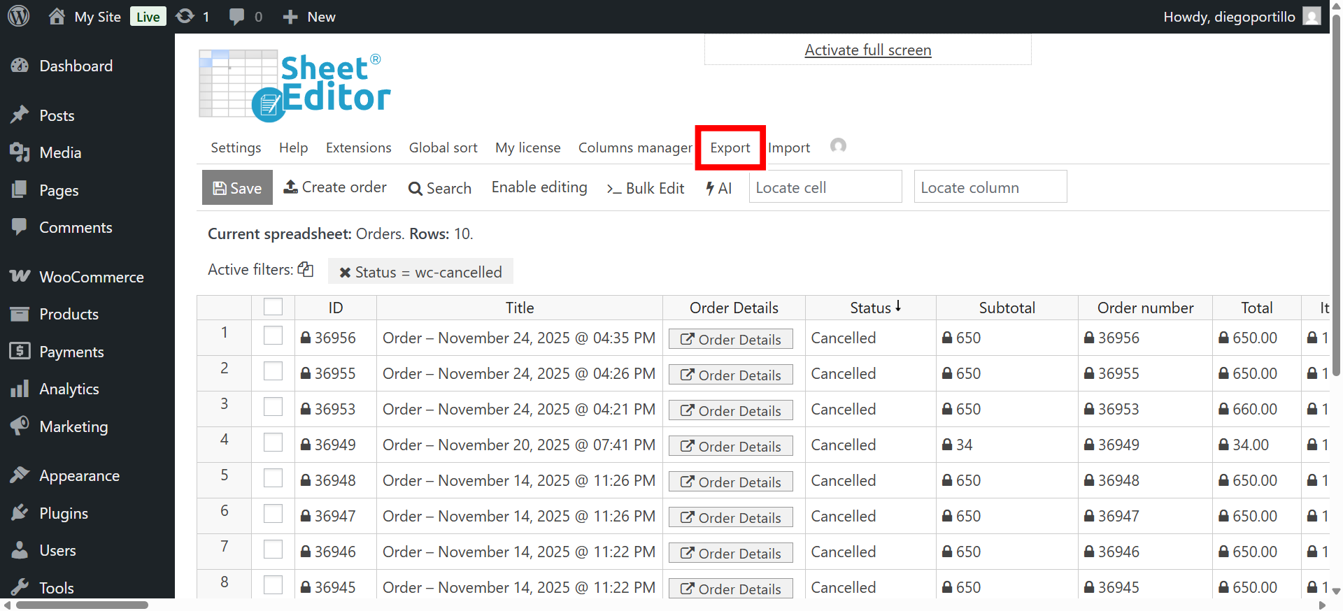 With WP Sheet Editor – WooCommerce Orders, managing and exporting cancelled orders is fast and accurate, saving you hours of boring work.