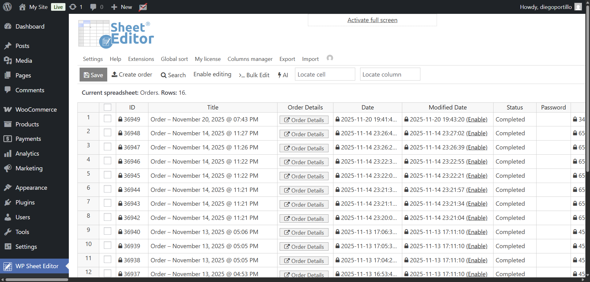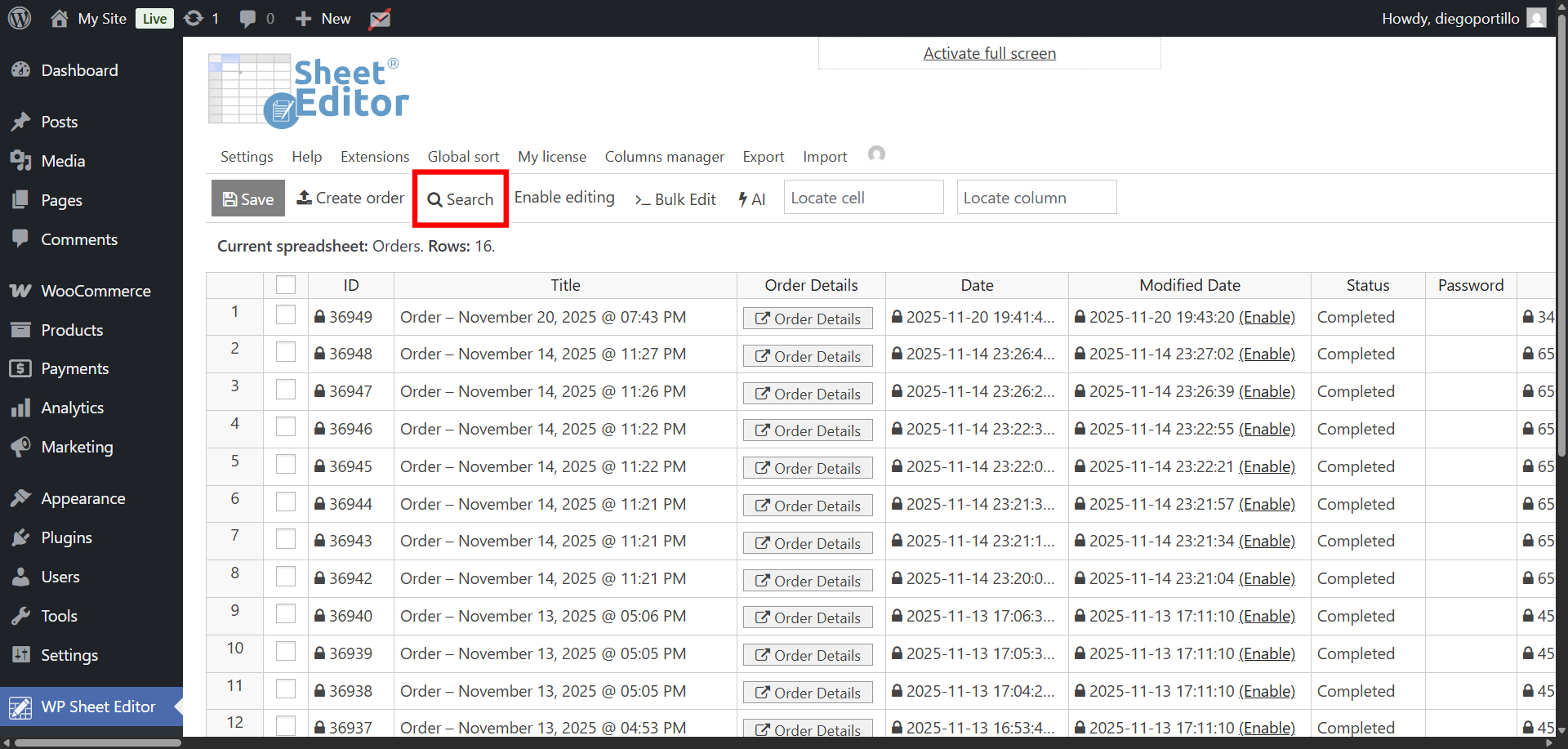 Using WP Sheet Editor avoids manual searches and ensures your exported file includes exactly the fields your team requires.