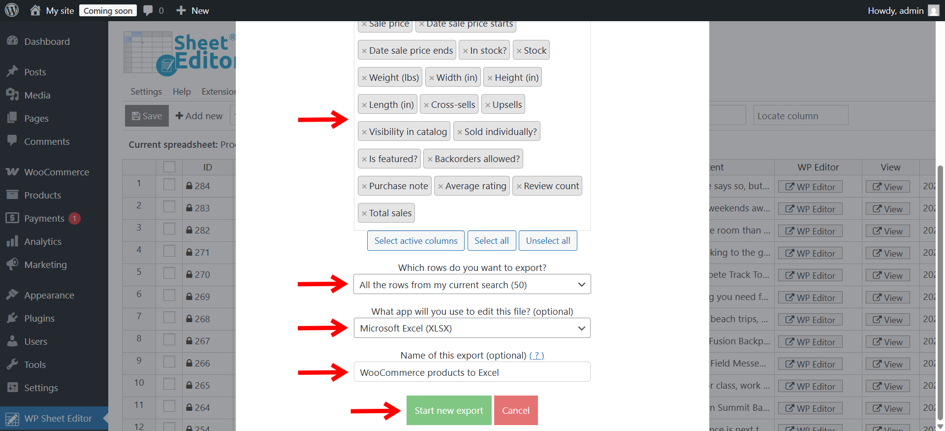 - Name of this export: (Optional) Give your file a recognizable name, such as “WooCommerce products to Excel”.