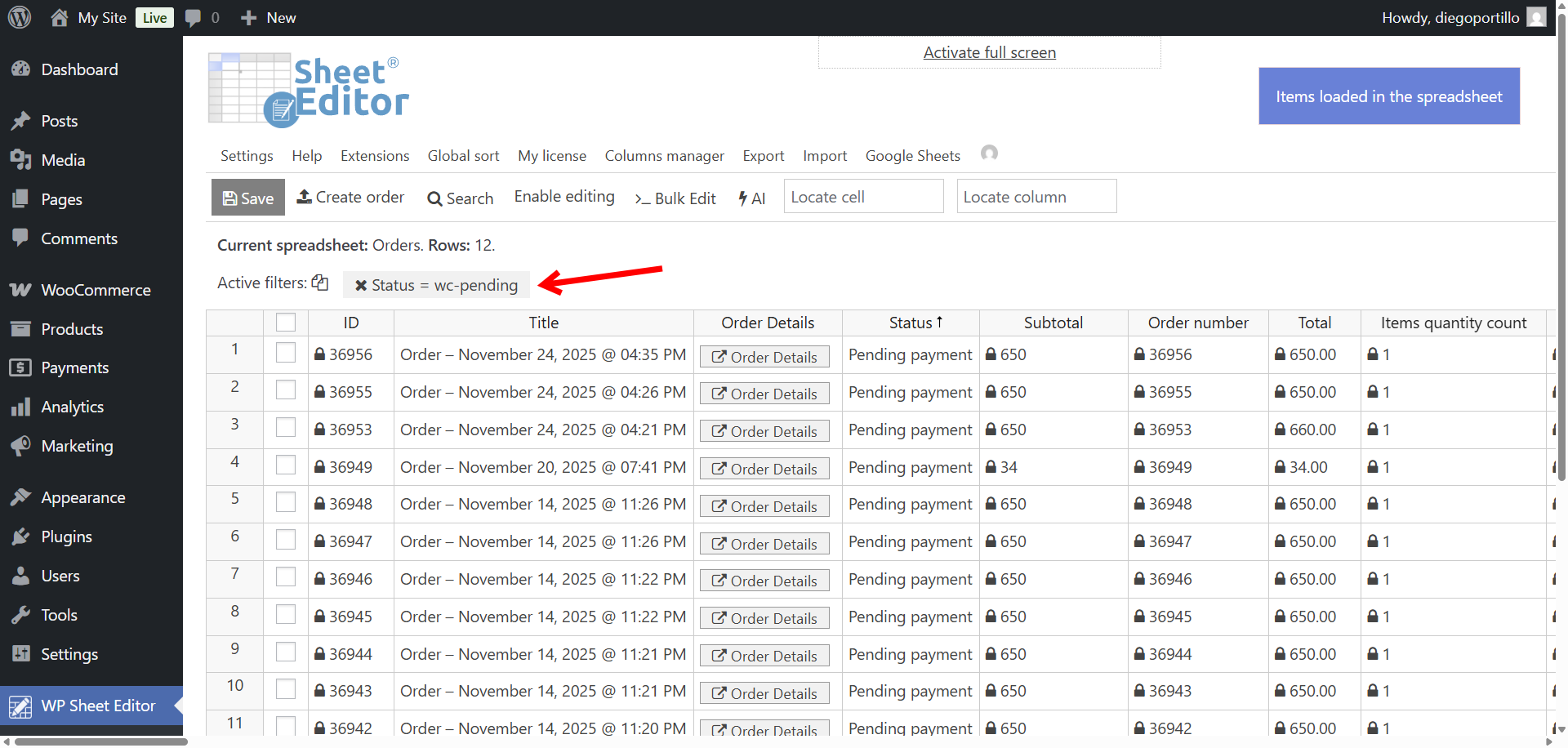 With WP Sheet Editor – WooCommerce Orders, exporting pending payment orders becomes a simple, automated workflow, giving you reliable and actionable data with no manual sorting.