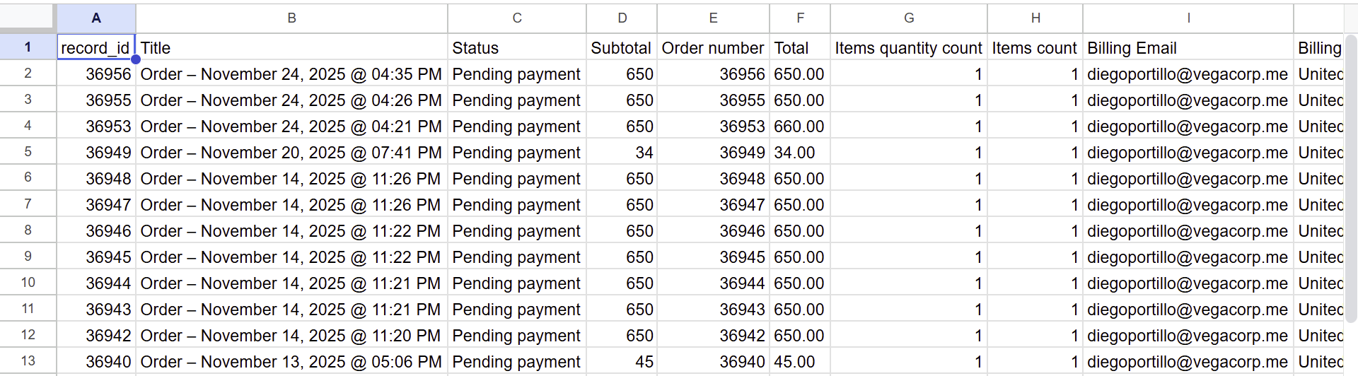 A clean spreadsheet of unpaid orders helps teams react quickly and efficiently.
