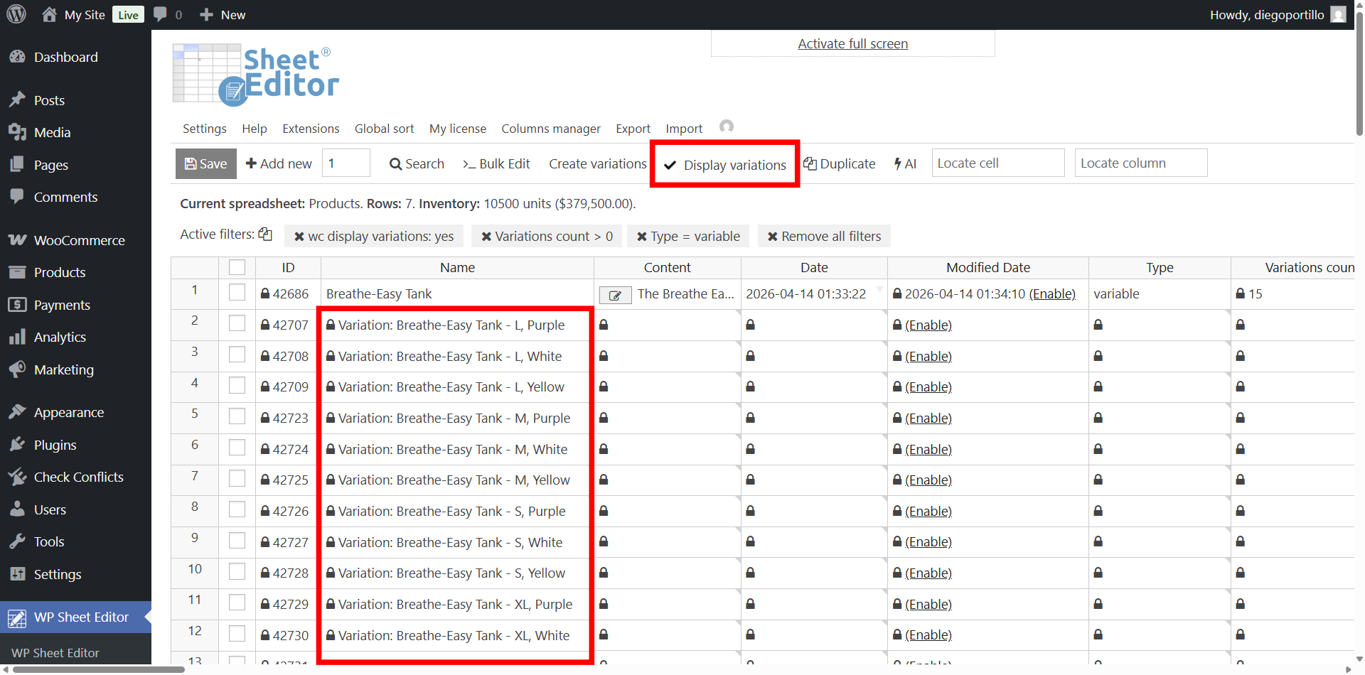 1. Display All WooCommerce Variations in the Spreadsheet
