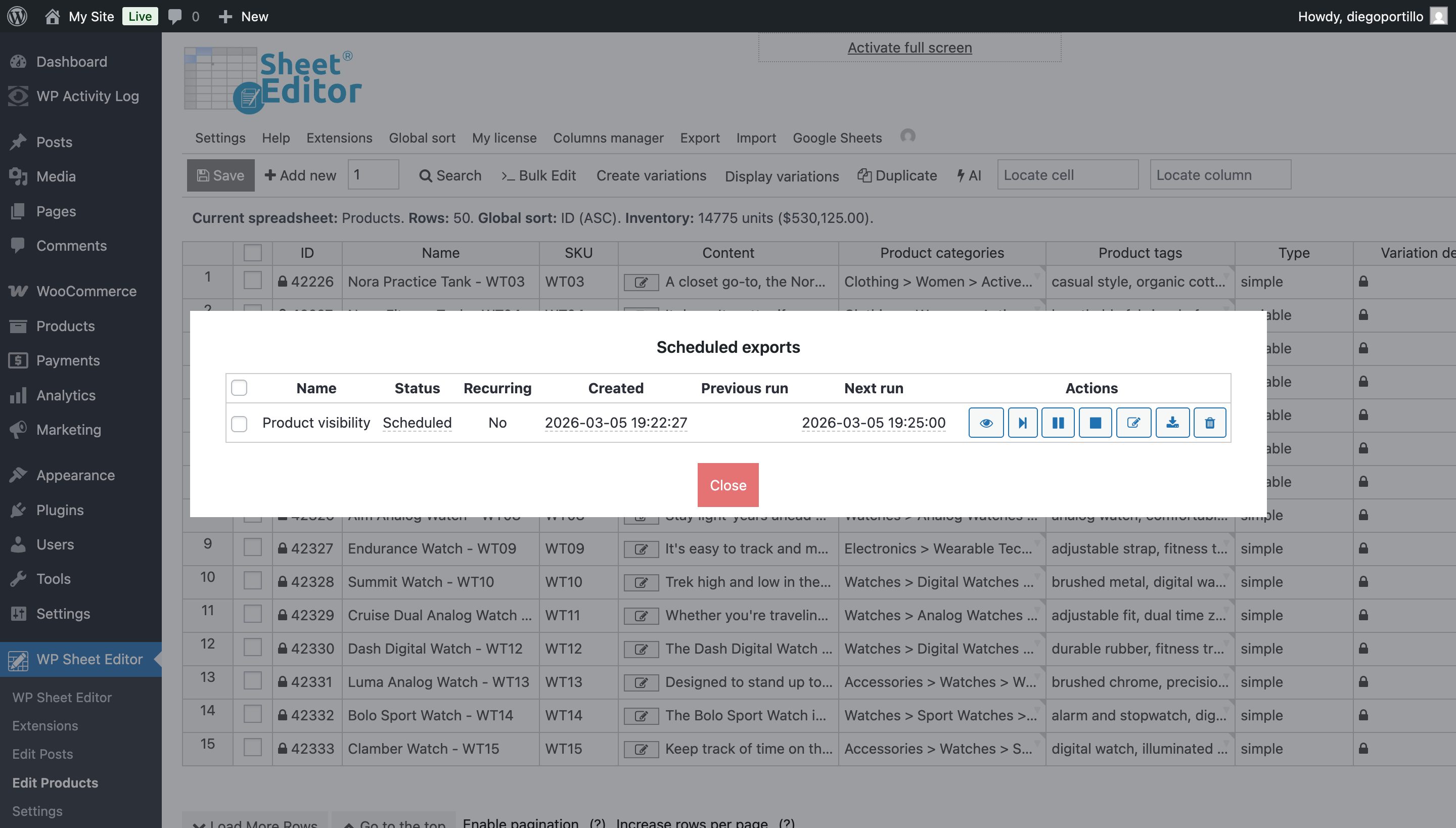 Since this is a bidirectional sync, the plugin will automatically create an import to auto monitor the changes made in Google Sheets. This is the feature that will allow you to manage your products’ visibility in Google Sheets. Every time you make product visibility changes in Google Sheets, these changes will be automatically imported into WordPress.