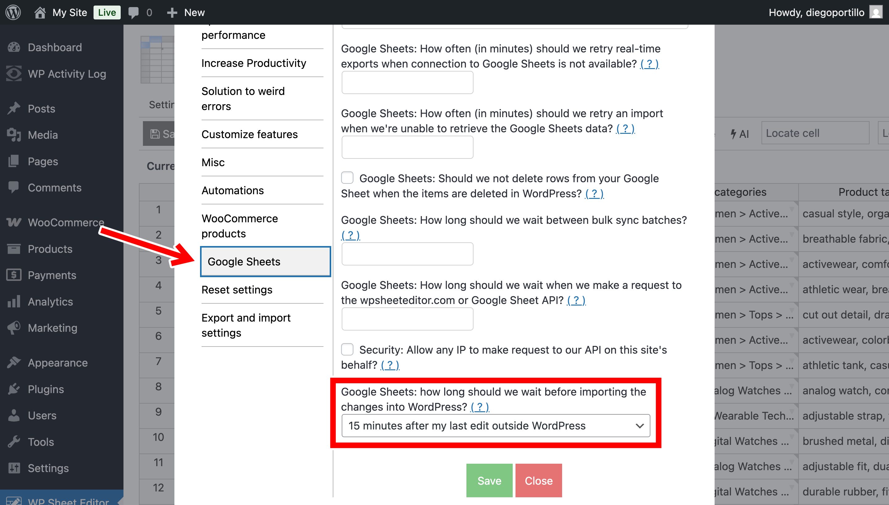 To select this, you can go to Settings > Advanced Settings > Google Sheets and select the time in the Google Sheets: How long should we wait before importing the changes into WordPress.
